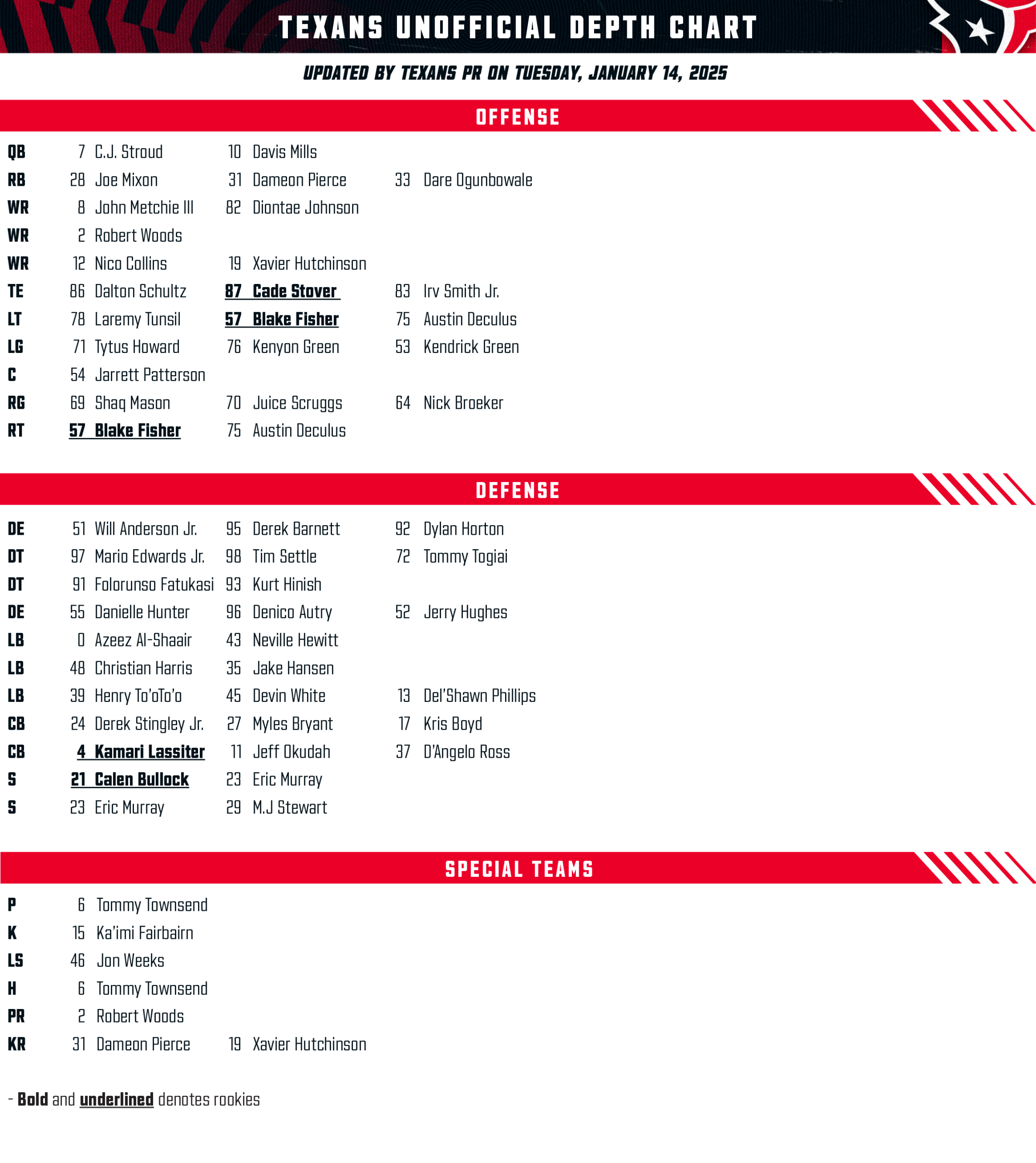 Глибина складу команди є критично важливою для успіху в НФЛ, і команда Техасців не є винятком. У 2023 році, розуміння структури складу допоможе вболівальникам і аналітикам оцінити шанси команди на успіх у новому сезоні.